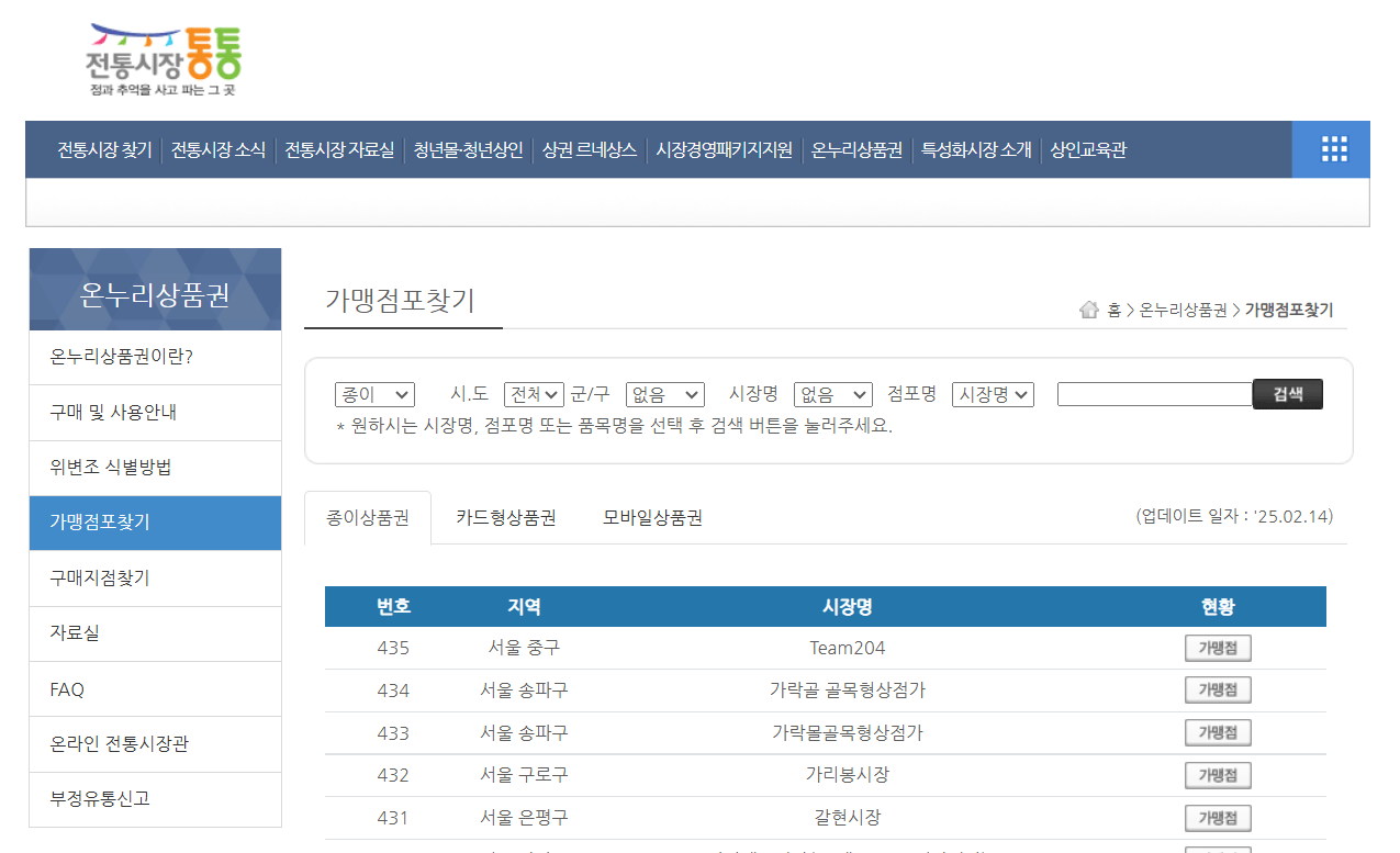 - 전통시장 통통 사이트에서 확인: 가맹점 목록 보기