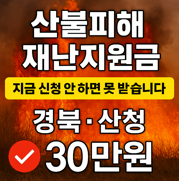 지금 바로 산불피해 재난지원금 신청 방법과 대상 조건, 그리고 의성군·산청 등 각 지자체별 지급 금액까지 정확히 확인해보세요. 30만 원 정액 지급부터 다양한 지원금 정보까지 빠짐없이 알려드립니다.