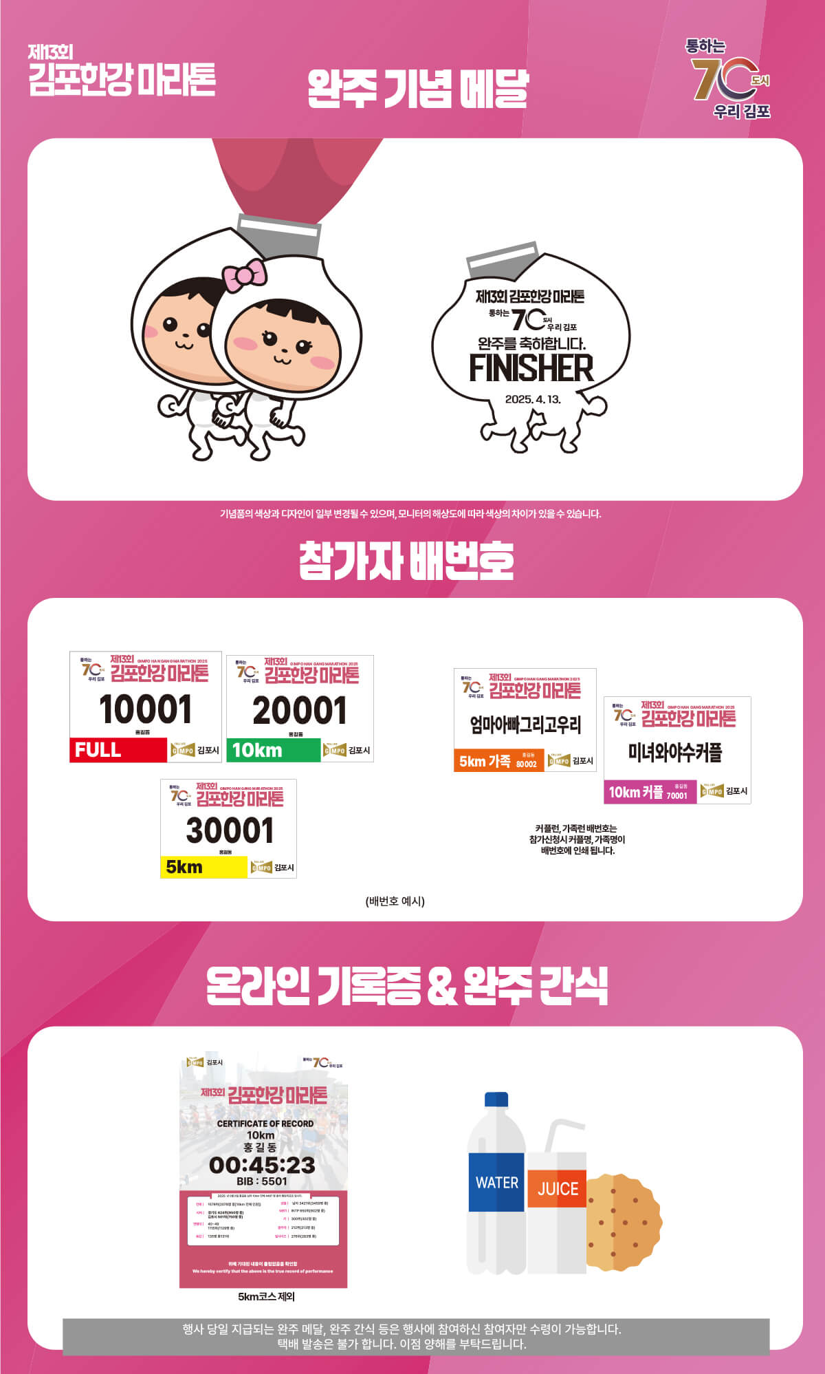 - 기록 칩 제공: 풀코스, 10km 코스, 10km 커플런 참가자만 기록 칩 제공