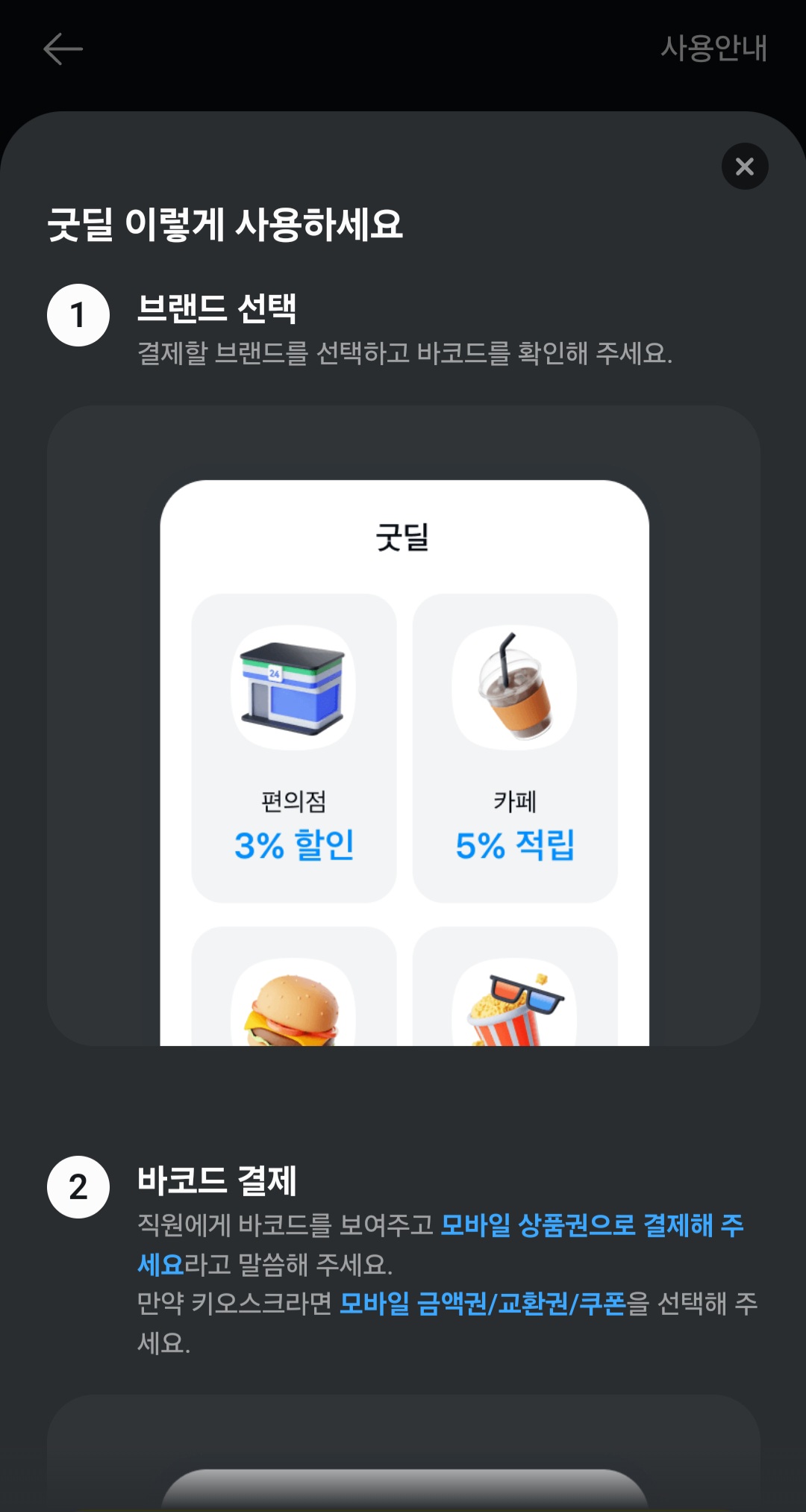 즉, 번거로운 과정 없이 원하는 매장에서 바코드를 생성하고 결제만 하면 자동으로 할인이 적용되는 스마트한 결제 방식입니다.