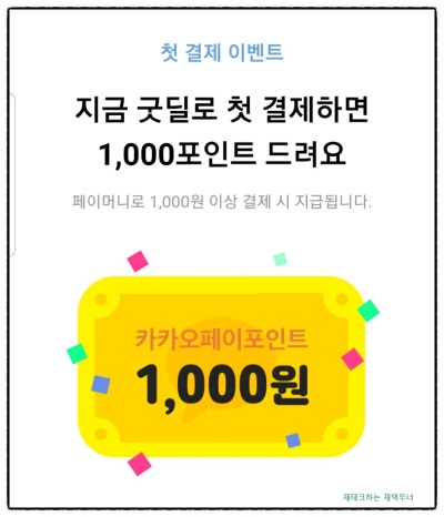 ✔ 첫 결제 추가 혜택: 1,000원 이상 첫 결제 시 카카오페이포인트 1,000P 지급!