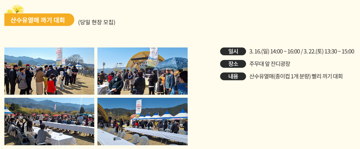 🔹 내용: 종이컵 1개 분량의 산수유 열매를 가장 빨리 까는 참가자가 우승!