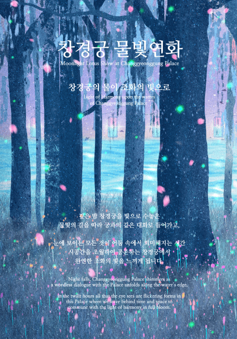- 창경궁의 문양과 조명이 조화를 이루며, 물빛을 통해 화합과 소생의 의미를 전달합니다.
